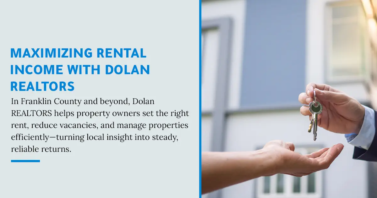 Rental demand in Franklin County varies based on neighborhood, seasonality, property condition, and home type. Local insights matter — and trends can differ between communities like Union, St. Clair, Washington, and nearby areas. Dolan REALTORS’ long-standing presence in the region provides a strong understanding of: